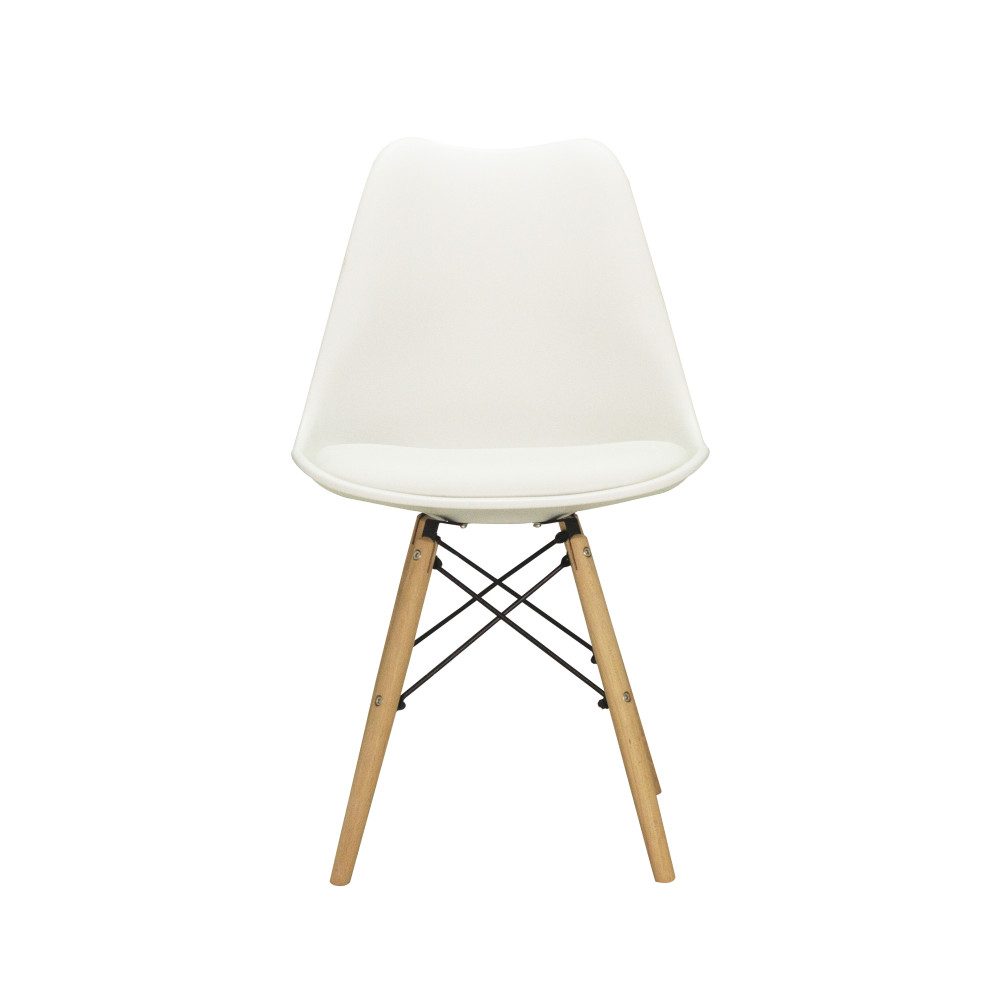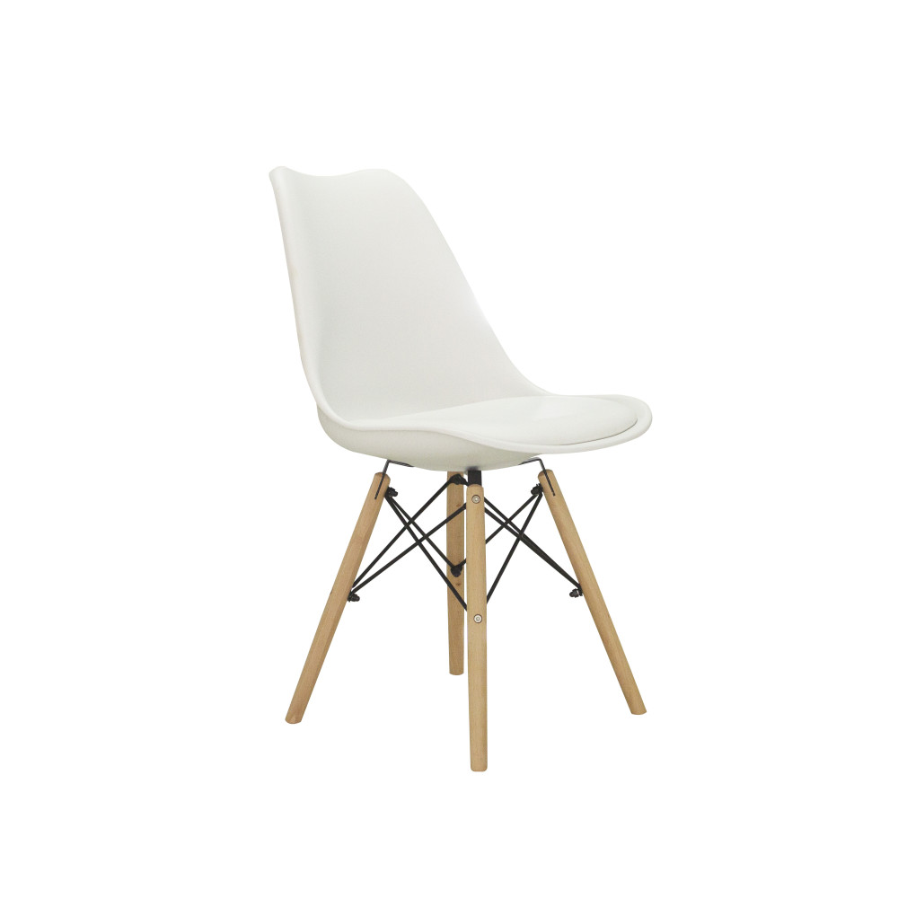 Ergonomski oblikovano sjedalo osigurava udobno sjedenje tijekom svakodnevne upotrebe, dok stabilna konstrukcija nogu od kombinacije drva i metala pruža pouzdanu potporu. Unatoč svom laganom izgledu, stolica je čvrsta i izdržljiva, čime dugoročno zadržava svoju funkcionalnost i estetski izgled.